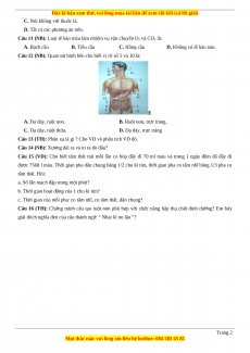 Câu 11 (NB): Loại tế bào máu làm nhiệm vụ vận chuyển O2 và CO2 là: A. Bạch cầu B. Tiểu cầu C. Hồng cầu