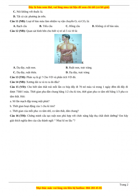Câu 12: Đáp án C Vị trí số 5: Dạ dày