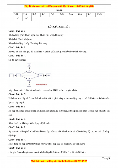 Câu 3: Đáp án A Sơ đồ truyền máu: