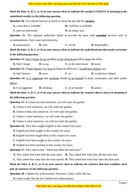 TÀI LIỆU BỘ BÁN CHẠY MÔN Tiếng Anh