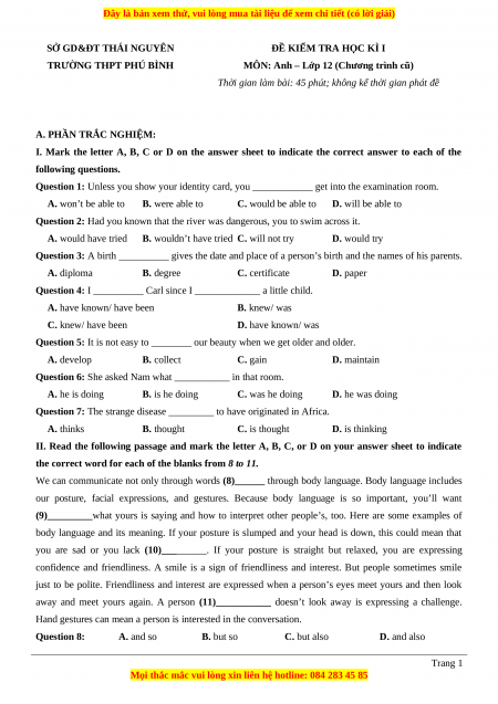 Hand gestures can mean a person is interested in the conversation. Question 8: A. and so B. but so C. but also D. and also Trang 1