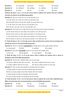 Question 34. (that) she would wait for him until he came. LỜI GIẢI CHI TIẾT Question 1. A