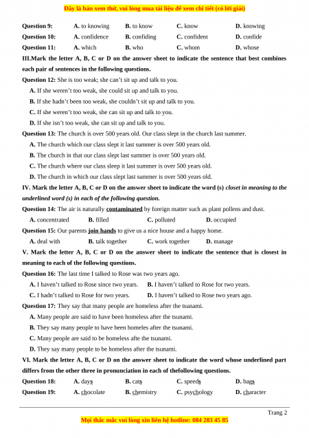 TÀI LIỆU BỘ BÁN CHẠY MÔN Tiếng Anh