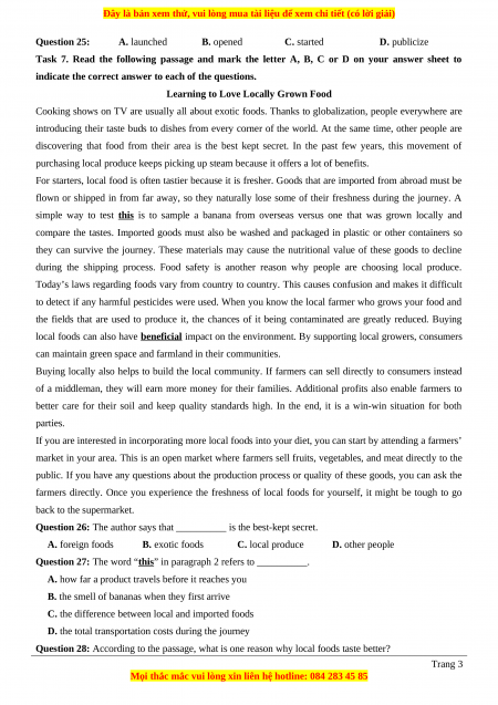 Question 28: According to the passage, what is one reason why local foods taste better? Trang 3
