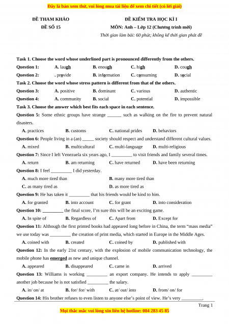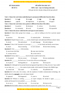 Tailieugiaovien.com.vn giới thiệu bộ 36 đề thi học kì 1 môn Tiếng Anh lớp 12 mới nhất năm 2022 - 2023 nhằm giúp Giáo viên có thêm tài liệu tham khảo ra đề thi Tiếng anh lớp 12.