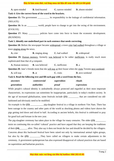An example is the (22) ___________ pig-slaughter festival in a village in northern Viet Nam. There has