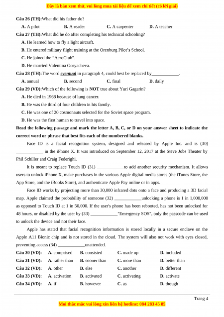 Câu 29 (VD):Which of the following is NOT true about Yuri Gagarin?