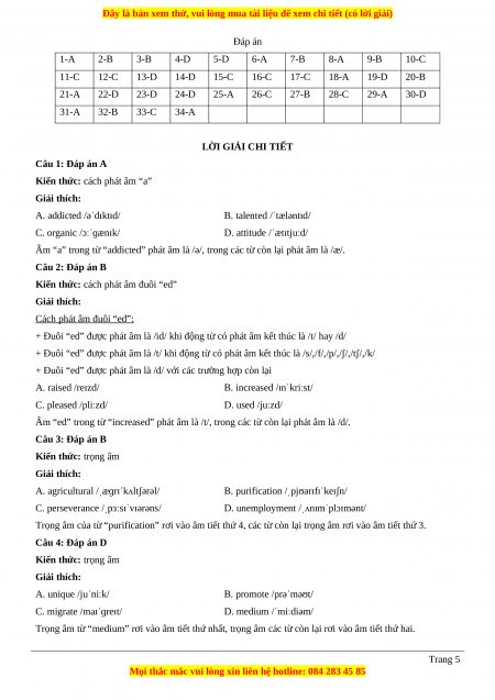 A. agricultural B. purification C. perseverance D. unemployment Câu 4 (NB): A. unique B. promote C. migrate D. medium