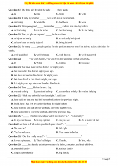 Question 16. Today a lot of important inventions are carried _____ by scientists. A. in B. with C. for D. out Trang 1