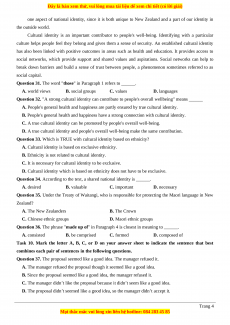 Question 36. The phrase "made up of" in Paragraph 4 is closest in meaning to ______. A. consisted B. be comprised C. formed D. composed of