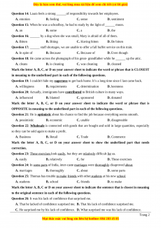 Question 13: People should willingly ______a hand with saving the environment before it becomes too bad to live in. A. do B. have C. give D. put Trang 1