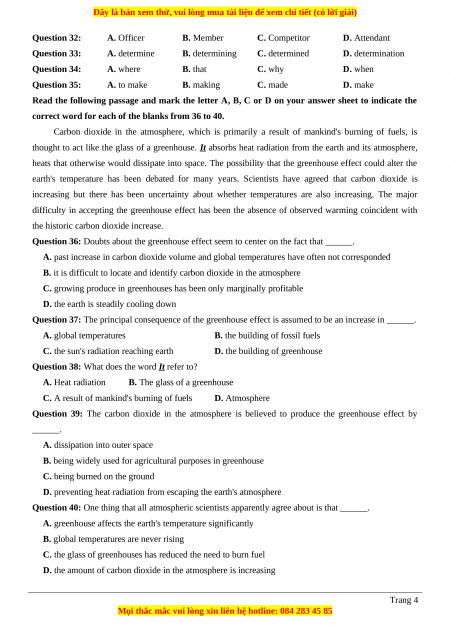 Question 32: A. Officer B. Member C. Competitor D. Attendant Question 33: A. determine B. determining C. determined D. determination Question 34: A. where B. that C. why D. when Question 35: A. to make B. making C. made D. make