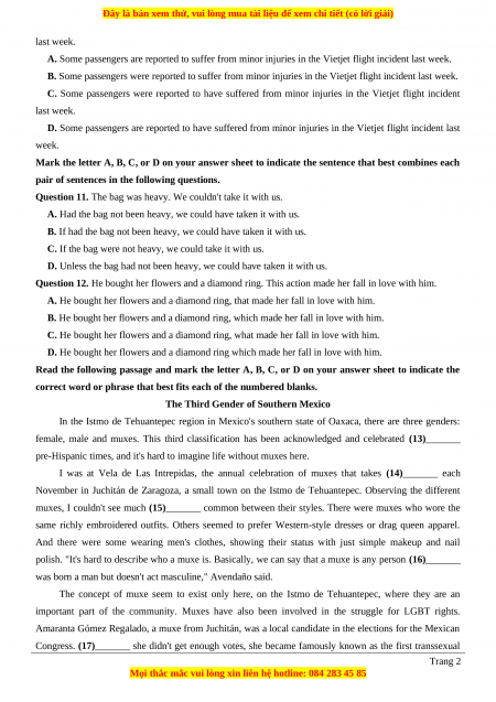 Question 10. They report that some passengers suffered from minor injuries in the Vietjet flight incident Trang 1