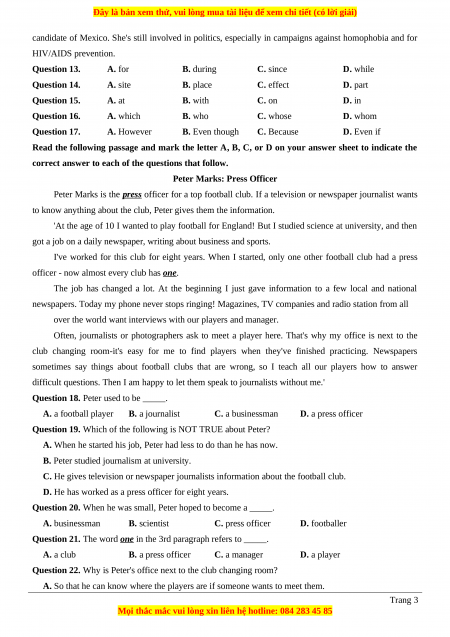 Question 18. Peter used to be _____. A. a football player B. a journalist C. a businessman D. a press officer