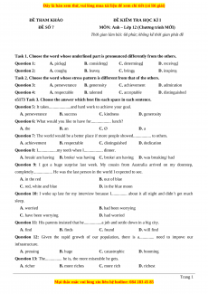 Task 2. Choose the word whose stress pattern is different from that of the others. Question 3: A. perseverance B. generosity C. achievement D. admiration Question 4: A. respectable B. talented C. acceptable D. distinguished