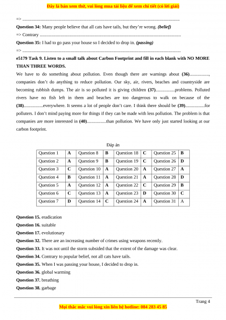 Question 36. global warming Question 37. breathing Question 38. garbage Trang 4