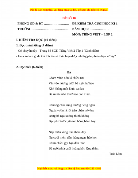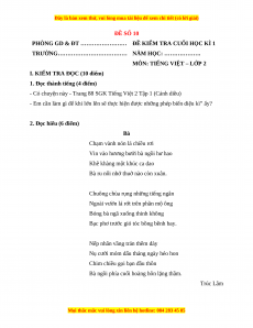 Đề thi học kì 1 Tiếng Việt lớp 2 Cánh diều - Đề 10