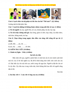 Câu 7. Gạch bỏ những từ không thuộc nhóm trong mỗi dãy từ sau: (1 điểm)