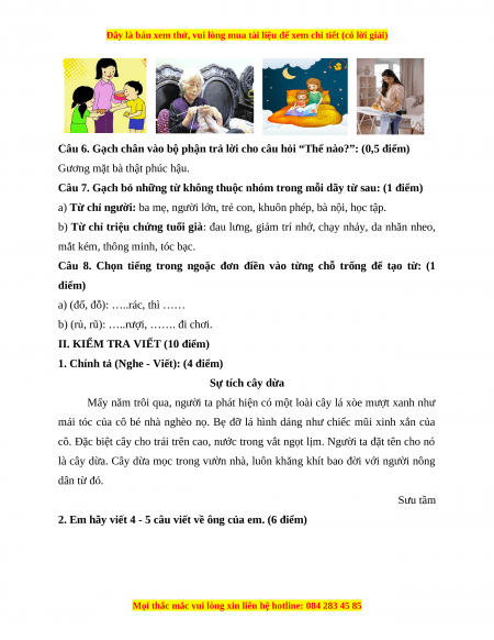 1. Chính tả (Nghe - Viết): (4 điểm) Sự tích cây dừa