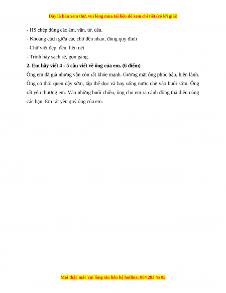 2. Em hãy viết 4 - 5 câu viết về ông của em. (6 điểm)