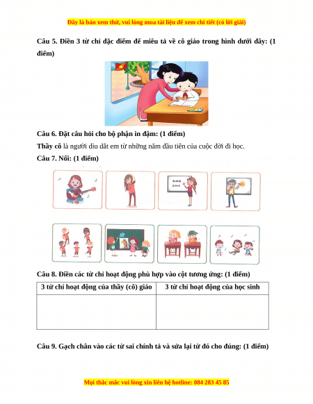 3 từ chỉ hoạt động của thầy (cô) giáo 3 từ chỉ hoạt động của học sinh