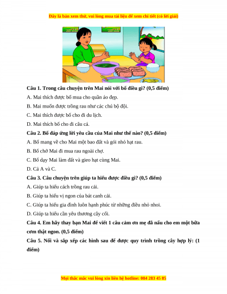 Câu 1. Trong câu chuyện trên Mai nói với bố điều gì? (0,5 điểm)