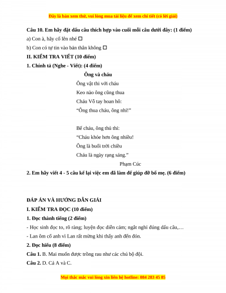 I. KIỂM TRA ĐỌC (10 điểm)