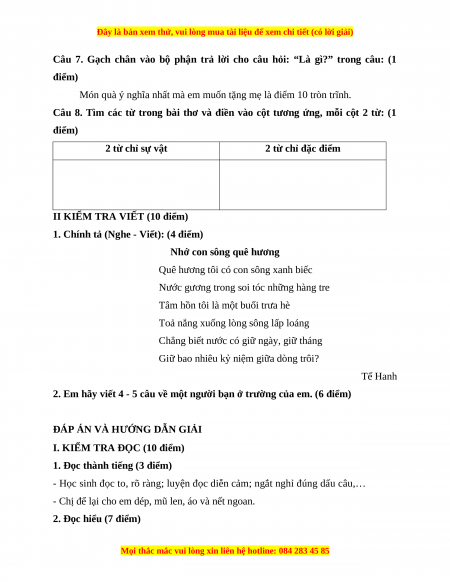 Câu 7. Món quà ý nghĩa nhất mà em muốn tặng mẹ là gì? Câu 8. 2 từ chỉ sự vật