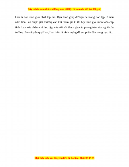 Lan là học sinh giỏi nhất lớp em. Bạn luôn giúp đỡ bạn bè trong học tập. Nhiều