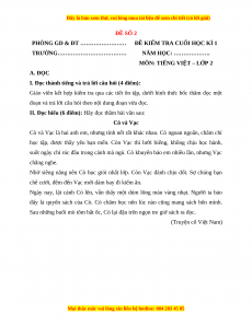 Đề thi học kì 1 Tiếng Việt lớp 2 Cánh diều - Đề 2