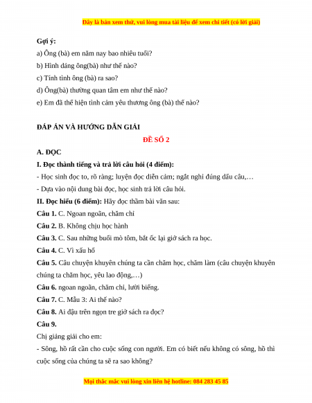 ĐÁP ÁN VÀ HƯỚNG DẪN GIẢI ĐỀ SỐ 2 A. ĐỌC