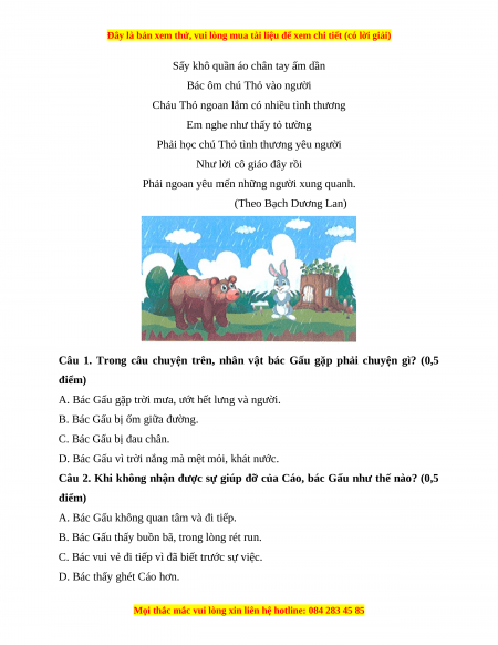 Câu 1. Trong câu chuyện trên, nhân vật bác Gấu gặp phải chuyện gì? (0,5 điểm)