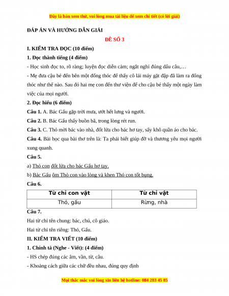 Câu 3. Thỏ đã làm gì giúp bác Gấu? (1 điểm)