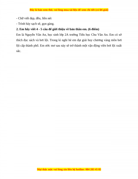 2. Em hãy viết 4 - 5 câu để giới thiệu về bản thân em. (6 điểm)