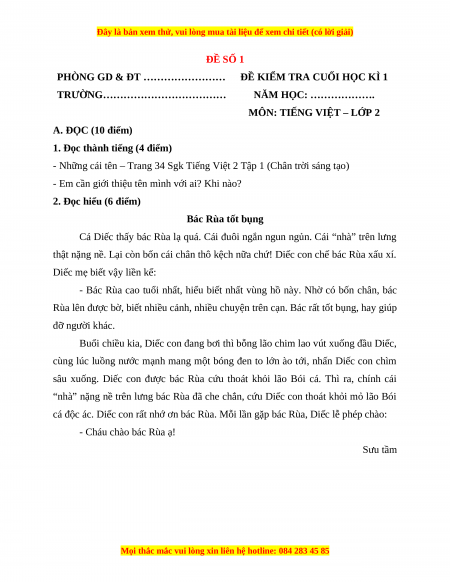 2. Đọc hiểu (6 điểm) Bác Rùa tốt bụng
