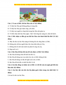 Câu 5. Em hãy đặt câu hỏi cho bộ phận gạch chân trong câu dưới đây? (1 điểm)
