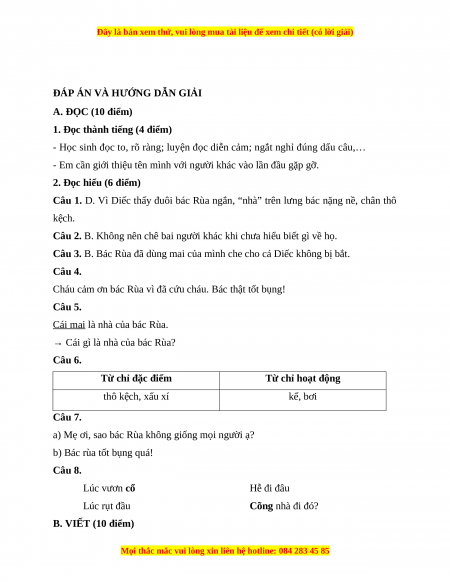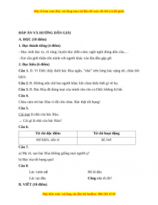 ĐÁP ÁN VÀ HƯỚNG DẪN GIẢI A. ĐỌC (10 điểm)