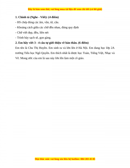 2. Em hãy viết 3 - 4 câu tự giới thiệu về bản thân. (6 điểm)