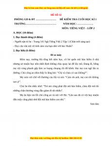 Đề thi học kì 1 Tiếng Việt lớp 2 Chân trời sáng tạo - Đề 12