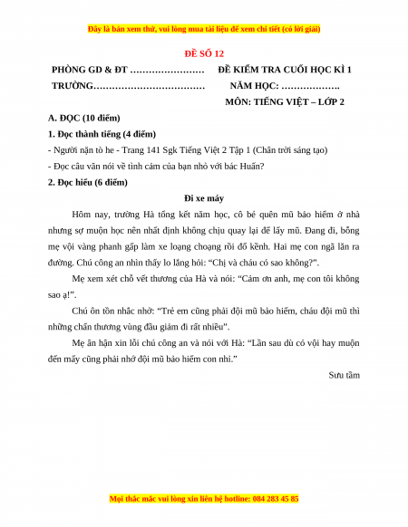 2. Đọc hiểu (6 điểm) Đi xe máy