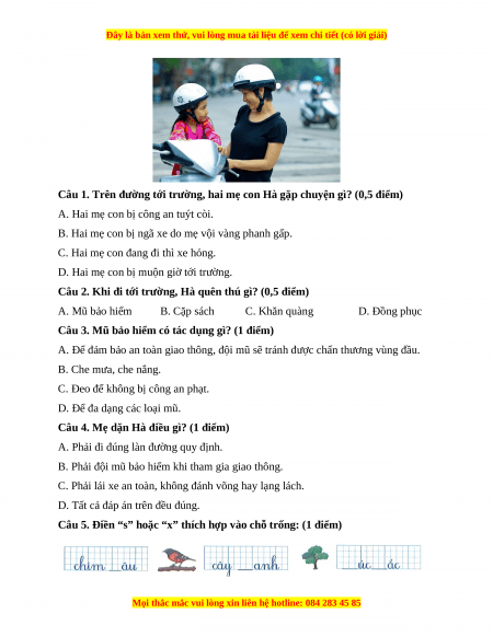 Câu 3. A. Để đảm bảo an toàn giao thông, đội mũ sẽ tránh được chấn thương vùng