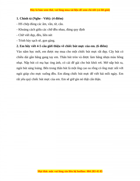2. Em hãy viết 4-5 câu giới thiệu về chiếc bút mực của em. (6 điểm)
