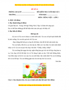 MÔN: TIẾNG VIỆT – LỚP 2 A. ĐỌC (10 điểm)
