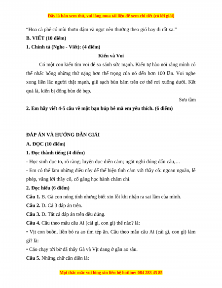 ĐÁP ÁN VÀ HƯỚNG DẪN GIẢI A. ĐỌC (10 điểm)