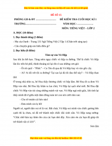 MÔN: TIẾNG VIỆT – LỚP 2 A. ĐỌC (10 điểm)