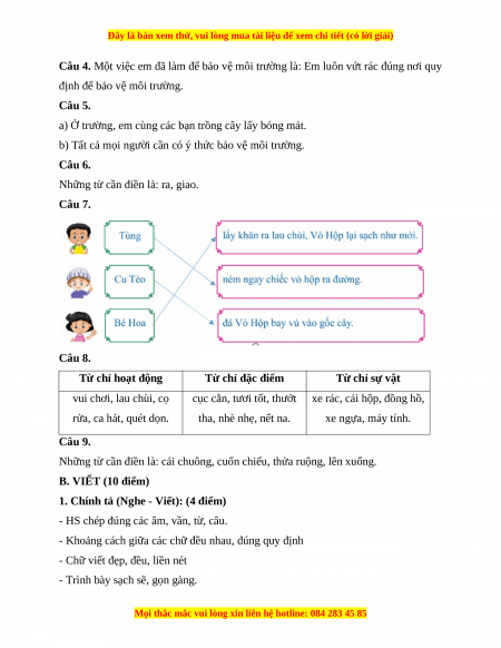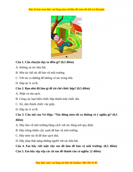 Câu 4. Một việc em đã làm để bảo vệ môi trường là: Em luôn vứt rác đúng nơi quy