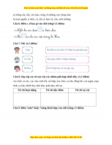 Câu 8. Sắp xếp các từ sau vào các nhóm phù hợp dưới đây: (1,5 điểm)