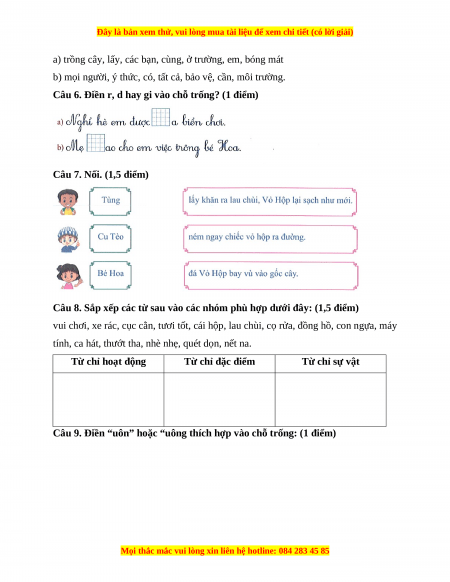 Câu 6. Điền r, d hay gi vào chỗ trống? (1 điểm)