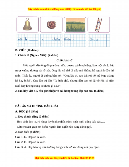 ĐÁP ÁN VÀ HƯỚNG DẪN GIẢI A. ĐỌC (10 điểm)