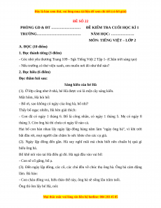 Đề thi học kì 1 Tiếng Việt lớp 2 Chân trời sáng tạo - Đề 22